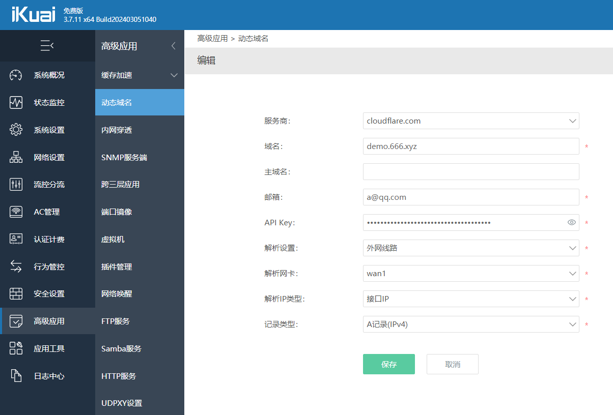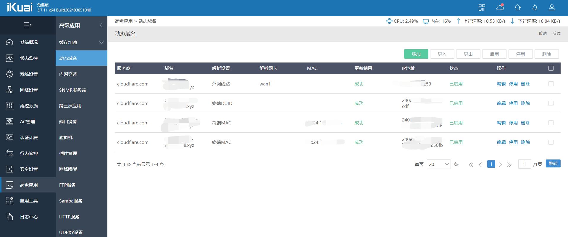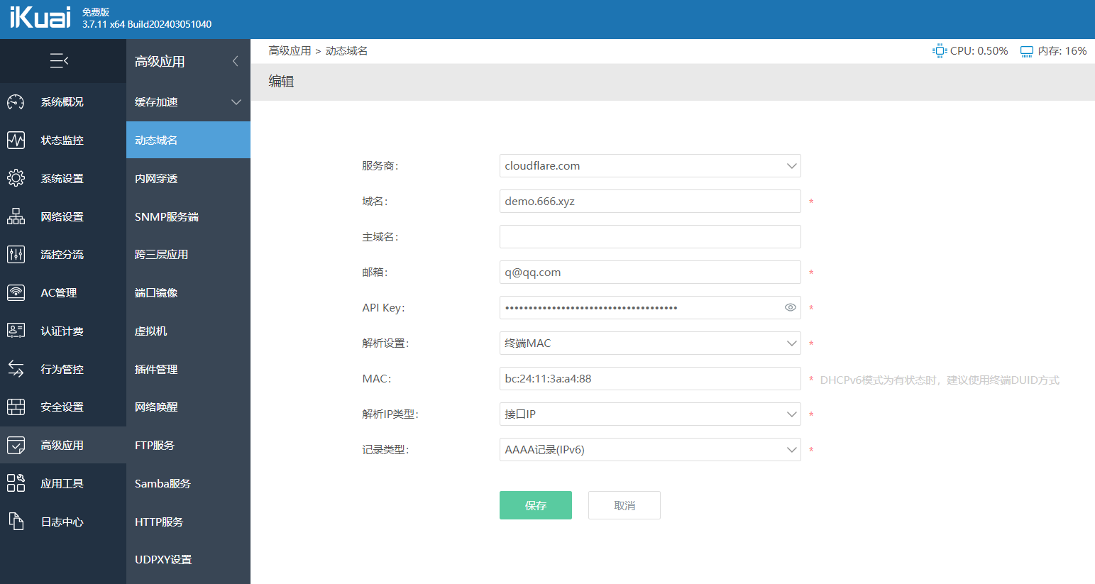 ikuai ipv4/ipv6 cloudflare ddns配置