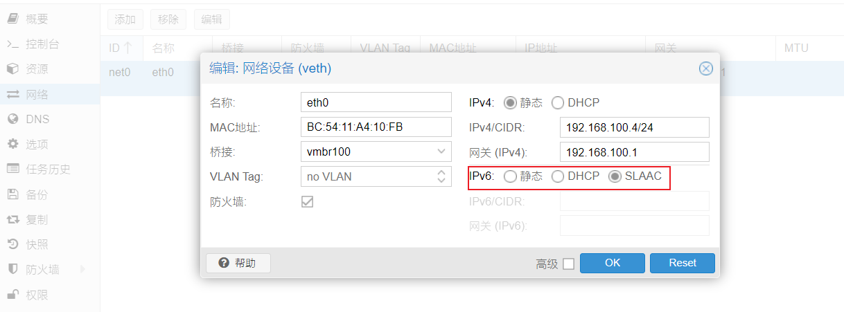 1. PVE网桥通过SLAAC配置公网ipv6地址